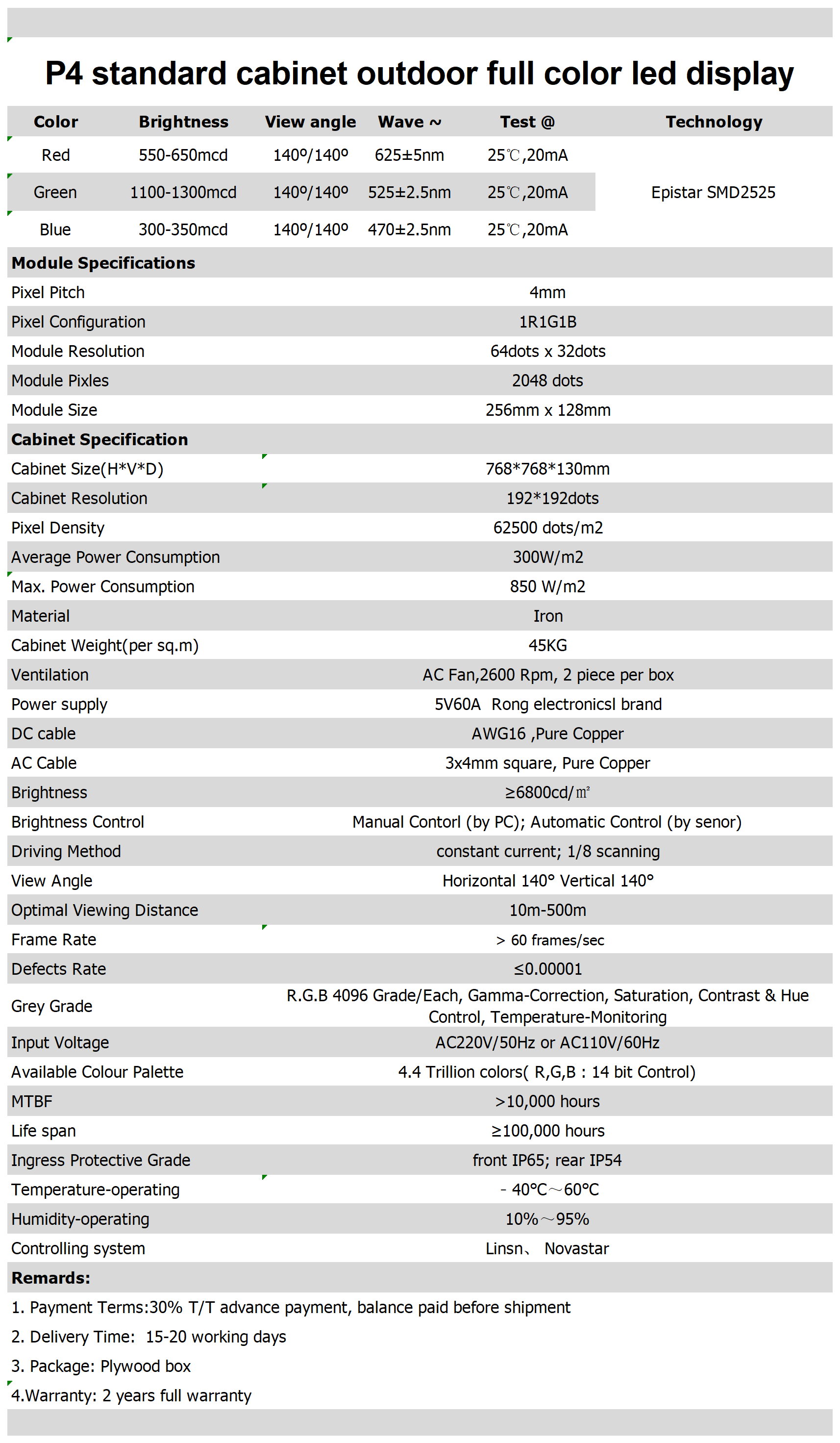 户外P4 256*128mm 模组